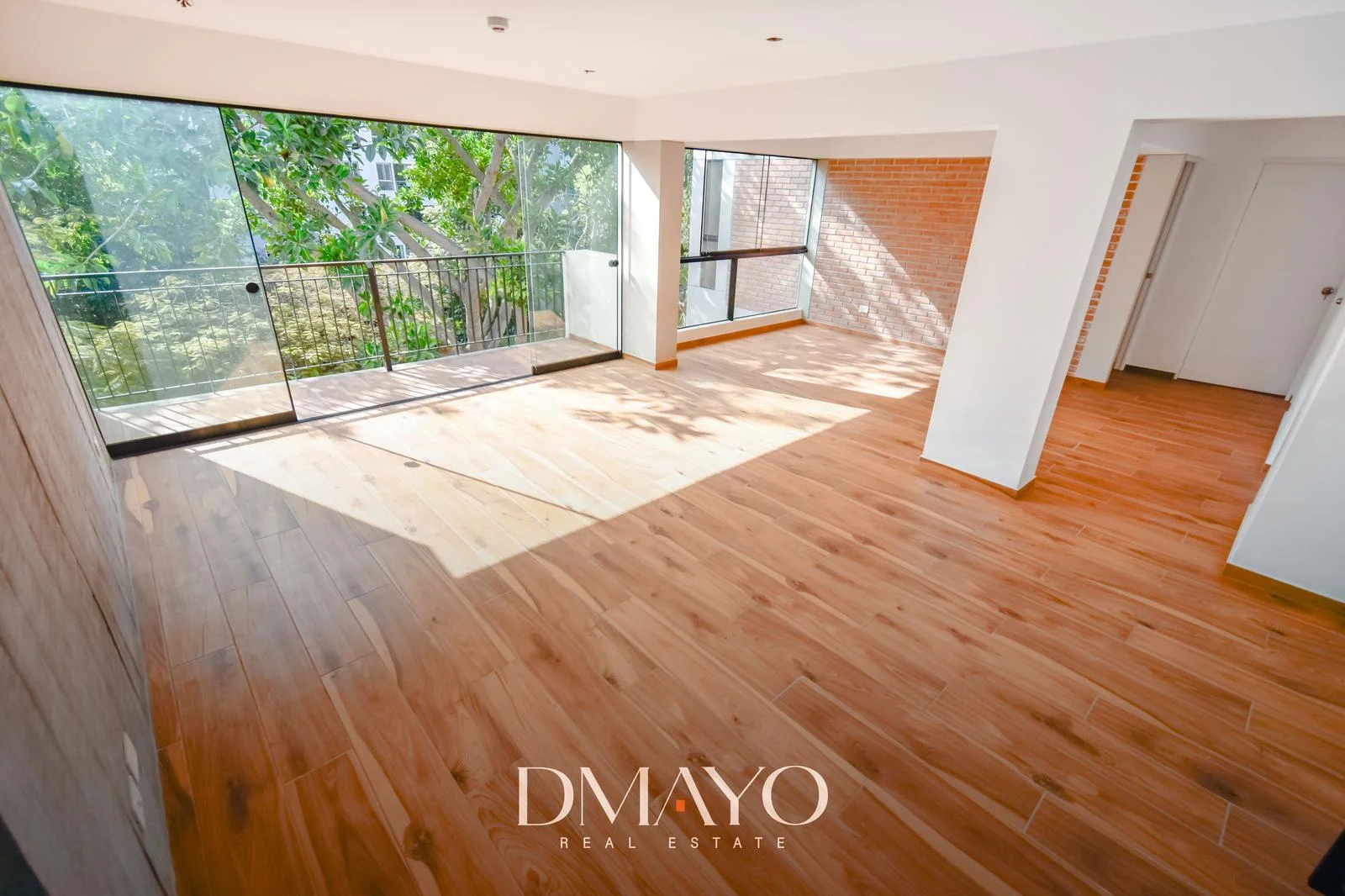 -Sala con balcón y comedor con hermosa vista a parque.