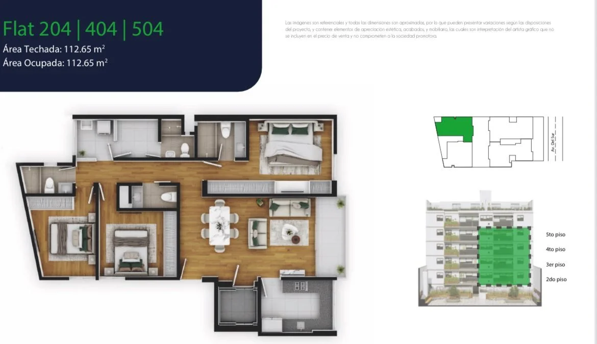 204, 404, 504: Area ocupada 112.65 m2, vista interior