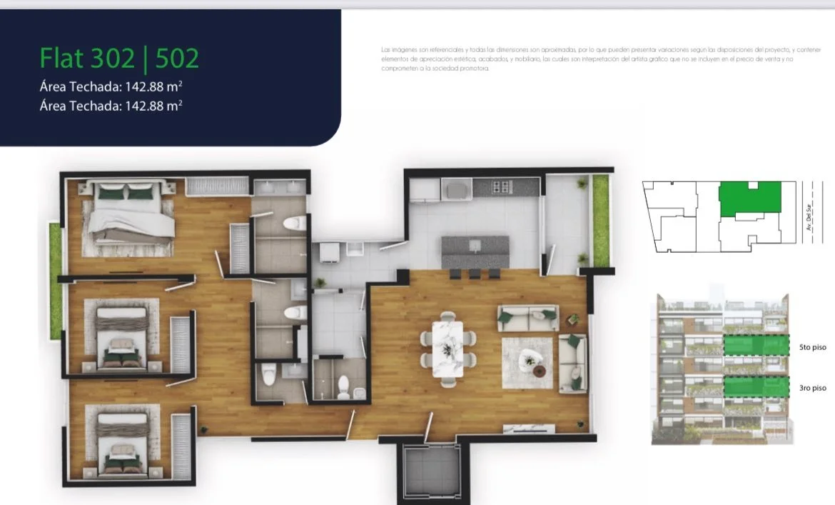 202, 302, 502: Area ocupada 142.88 m2, vista exterior
