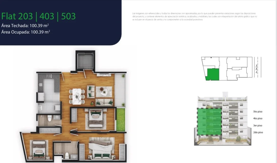 203, 403, 503: Area ocupada 100.39 m2, vista interior