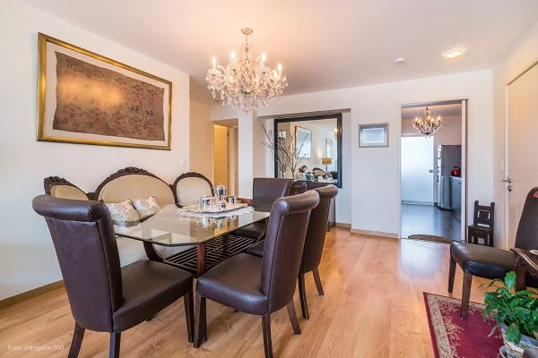 AMPLIA SALA COMEDOR, BAÑO DE VISITA, COCINA TOTALMENTE AMOBLADA CON REPOSTEROS ALTOS Y BAJOS, LAVANDERIA Y AREA COMPLETA DE SERVICIO