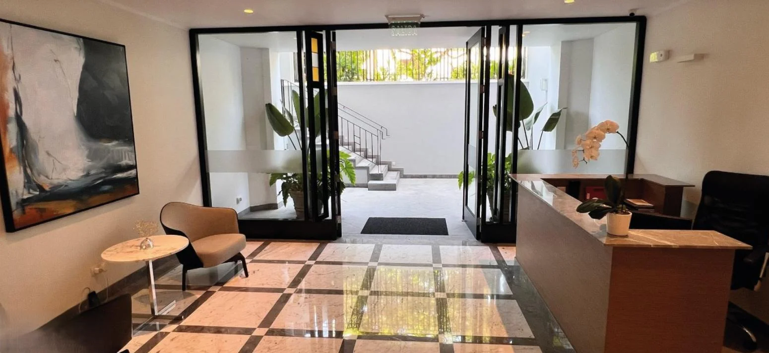 Ubicado en calle los Laureles a pasos del emblemático Lima Golf club, hotel los Delfines zonas más tradicionales y residenciales del distrito.