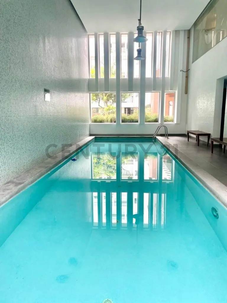 Piscina temperada, gimnasio, salón de usos múltiples, juegos infantiles, parque interno y lobby elegante.