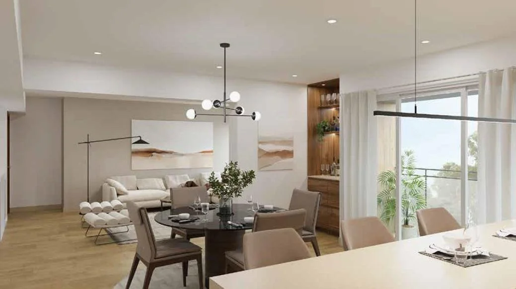 Sala y comedor amplios, con excelente iluminación natural.