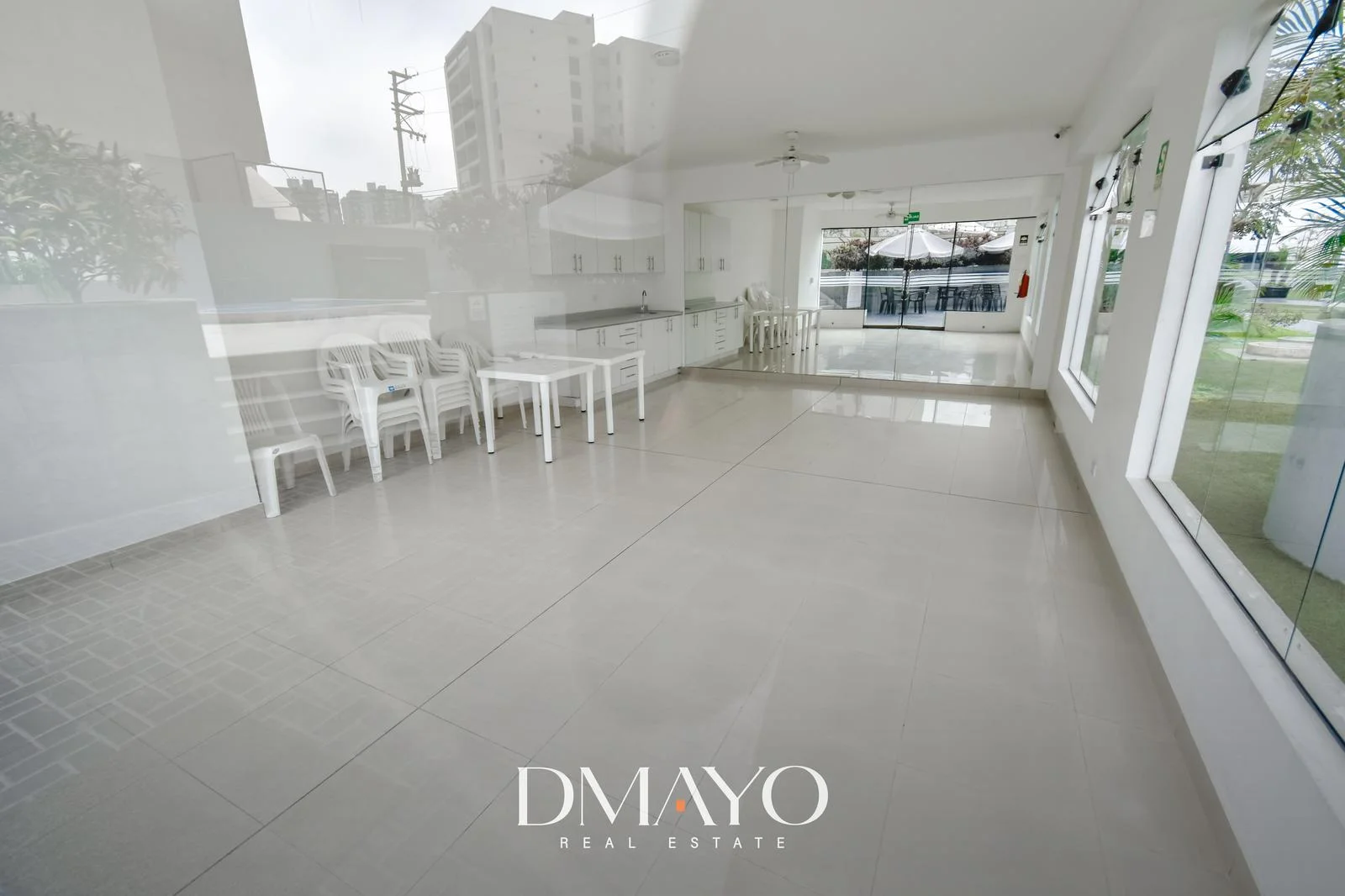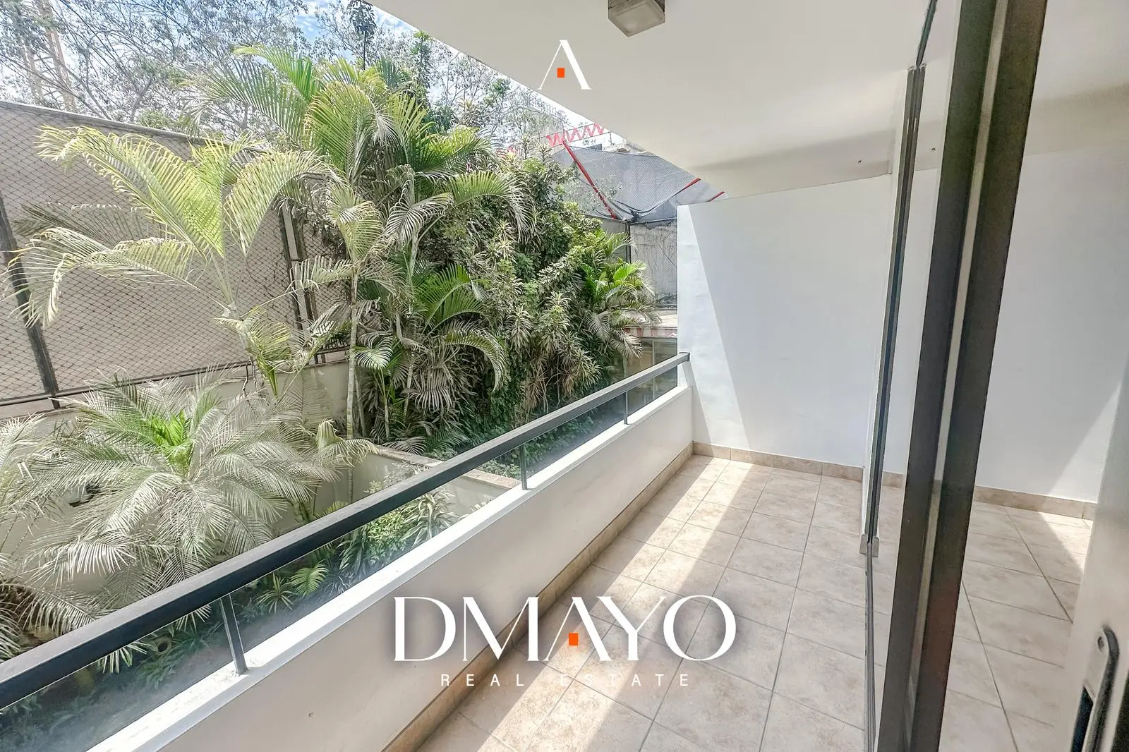 Balcón amplio e iluminado con vista interna.