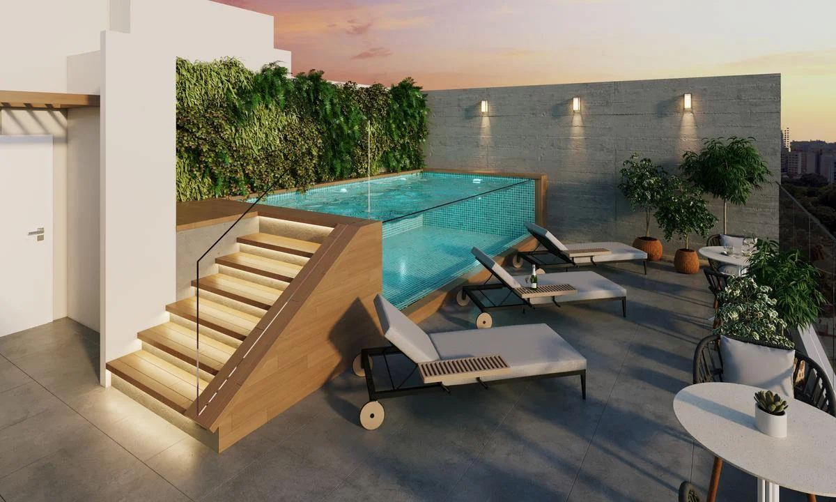 Áreas comunes: Lobby, Piscina, Sala Bar, Terraza y Parrilla,Sala de juegos para niños, Áreas verdes.