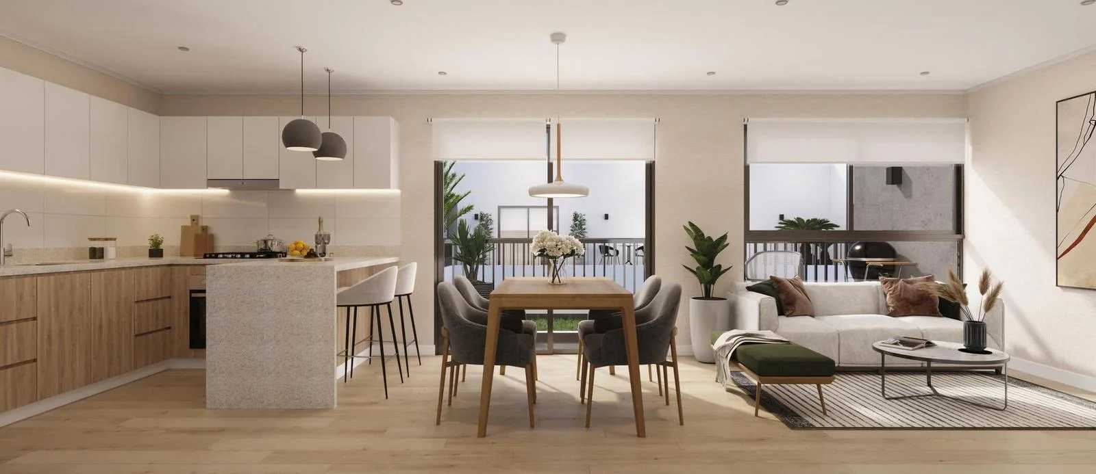 Los dos baños completos están estratégicamente ubicados para servir tanto a los residentes como a las visitas, proporcionando funcionalidad y privacidad. Además, la zona de lavado, discretamente ubicada, facilita las tareas domésticas sin interferir con el resto de las actividades diarias. Este departamento combina diseño, confort y eficiencia, haciendo que cada metro cuadrado cuente.