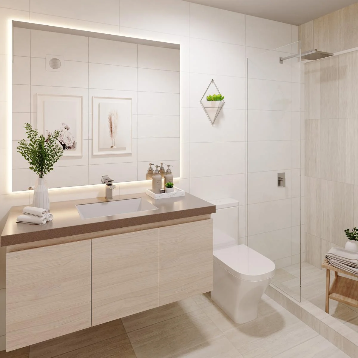 Además, cada apartamento cuenta con un baño adicional, ideal para visitas, y una zona de lavado independiente, equipada con lavadora y secadora. Esto garantiza la comodidad y la practicidad en la vida diaria.