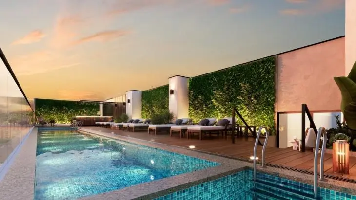 Áreas comunes: Lobby, Gimnasio, Bike, Zone, Sala Bar, BBQ Zone, Piscina.