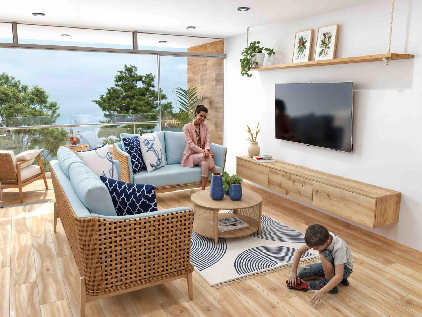 Primer piso: Hall de ingreso, Sala-comedor, kitchenette, 1 baño de visita, lavandería, terraza.