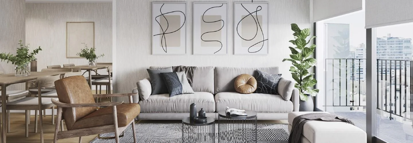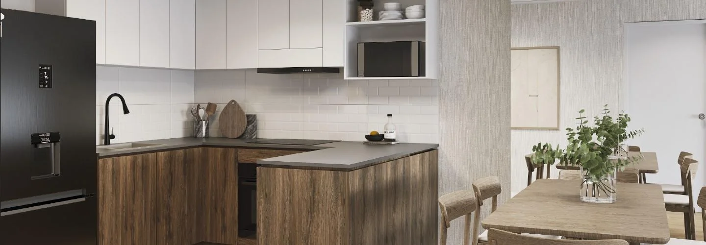 DPTO 103Cuenta sala-comedor, kitchenette, 3 dormitorios, 2 baños, cuarto de lavado.