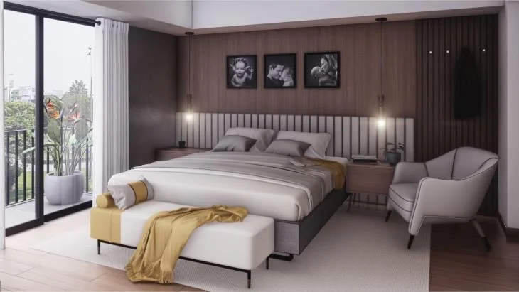 La propuesta incorpora elementos smart en cada unidad, como panel de sonido con conexión Bluetooth, caja de seguridad y caja fuerte empotrada. La seguridad está garantizada con guardianía permanente, ingreso controlado y dos ascensores directos (principal y de servicio) que permiten un acceso cómodo y exclusivo a cada residencia.