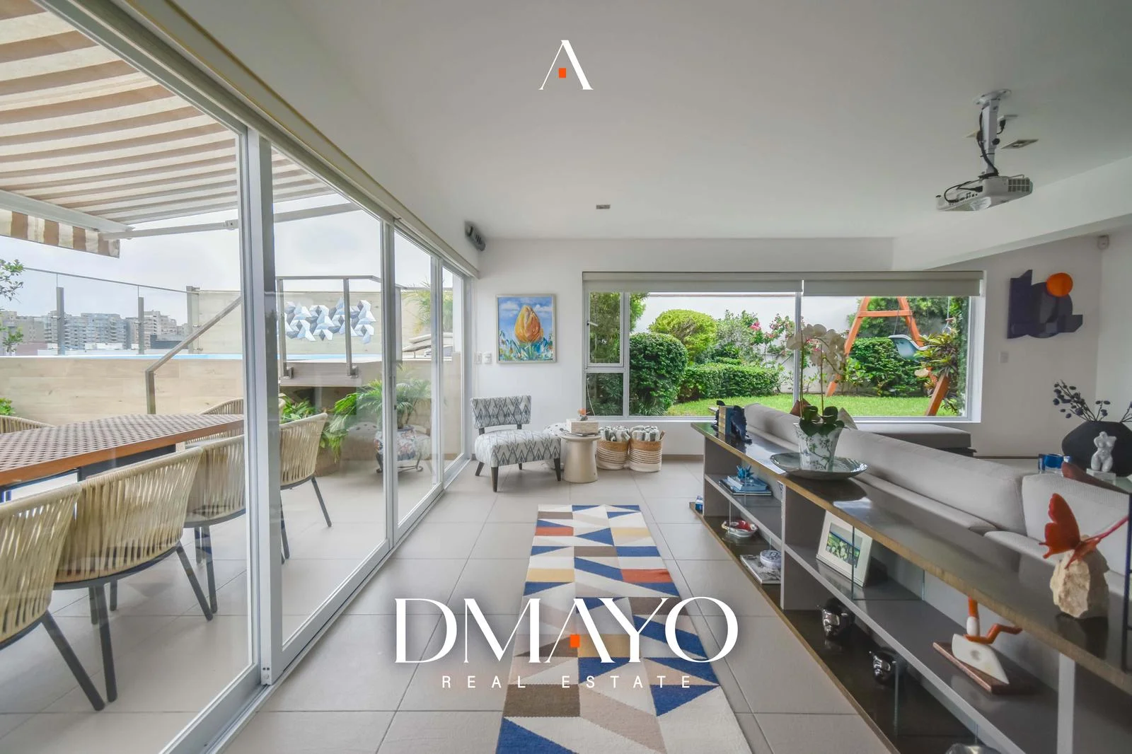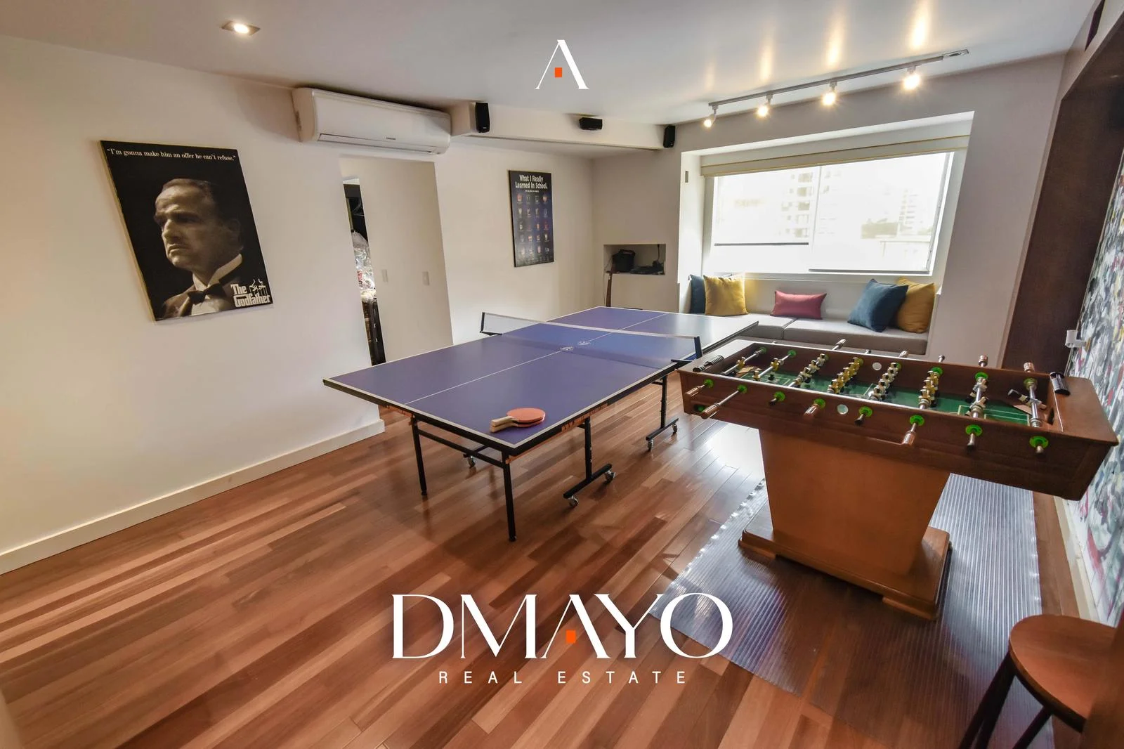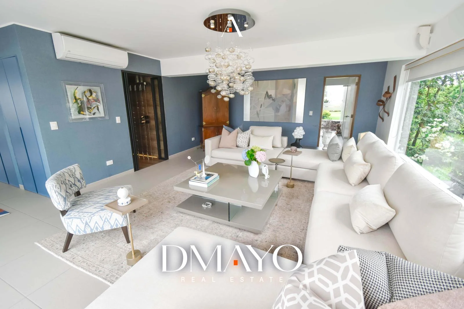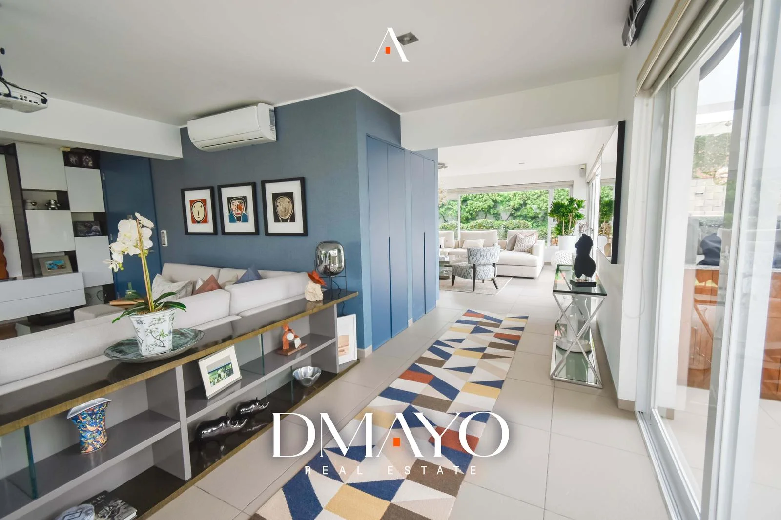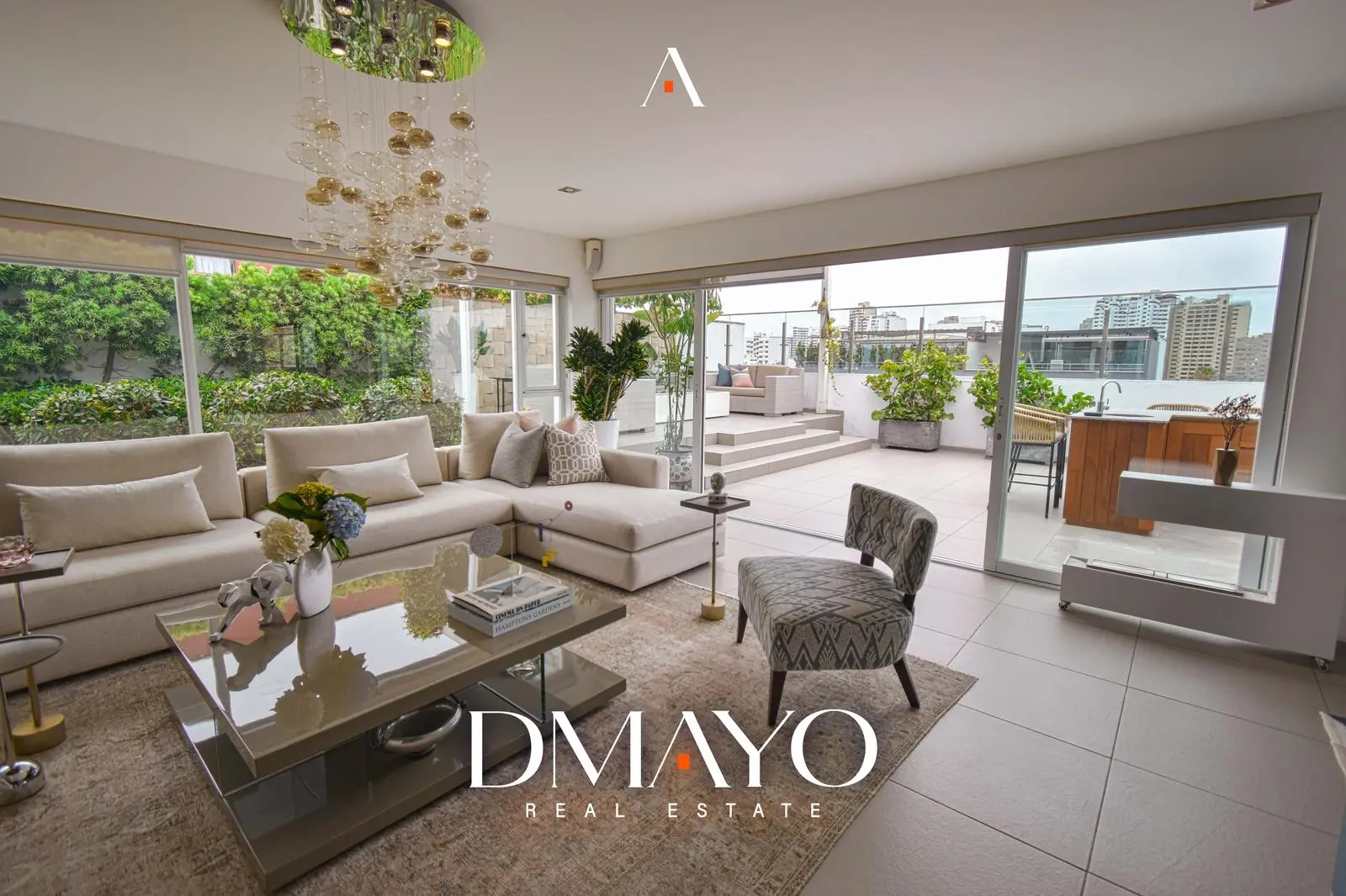 El departamento cuenta con ascensor directo, que da acceso a una elegante sala principal dividida en dos ambientes por una chimenea, creando espacios acogedores y sofisticados. Un comedor principal con capacidad para 16 personas y un bar.