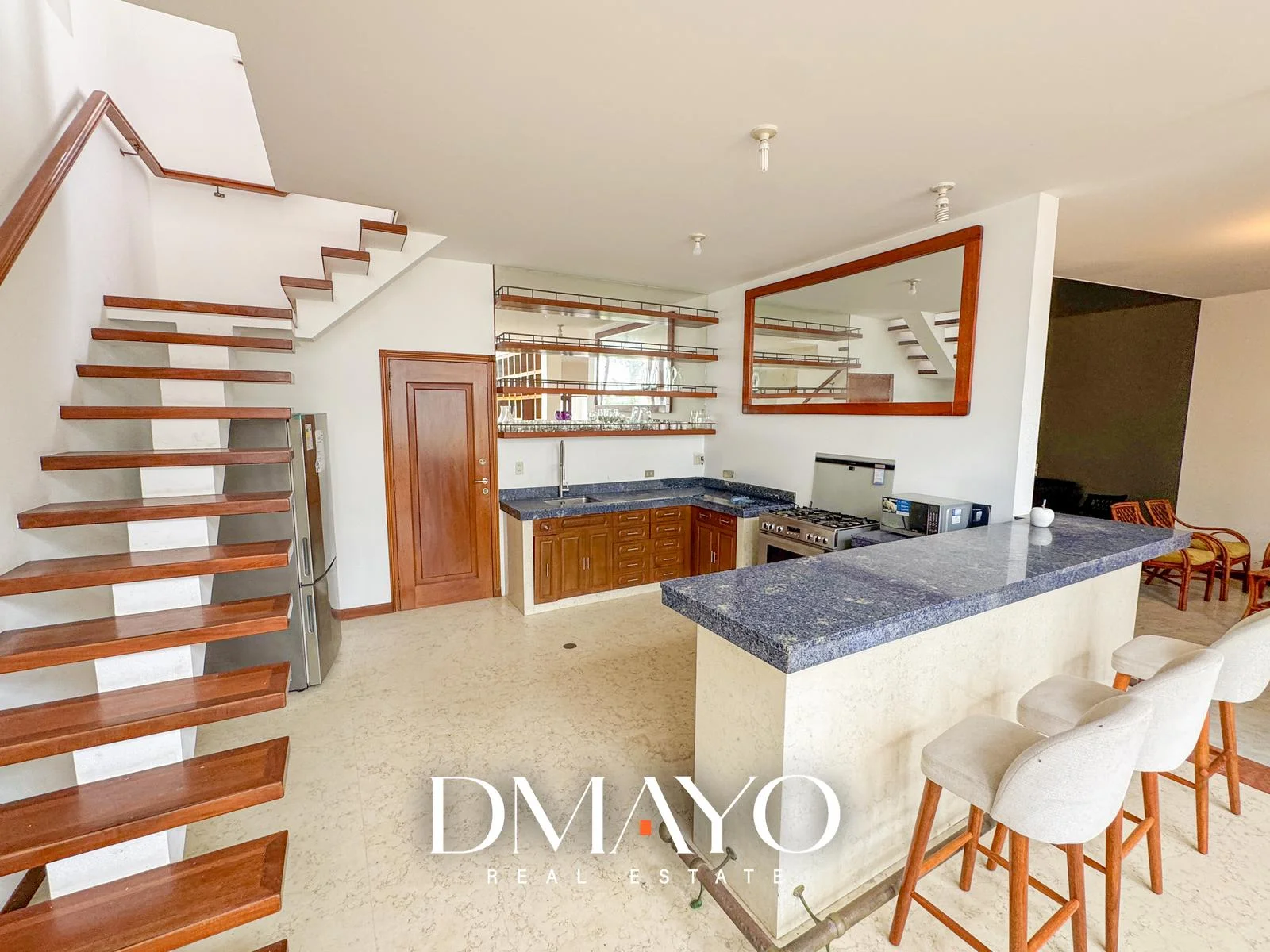 Sala-comedor con cocina americana integrada.